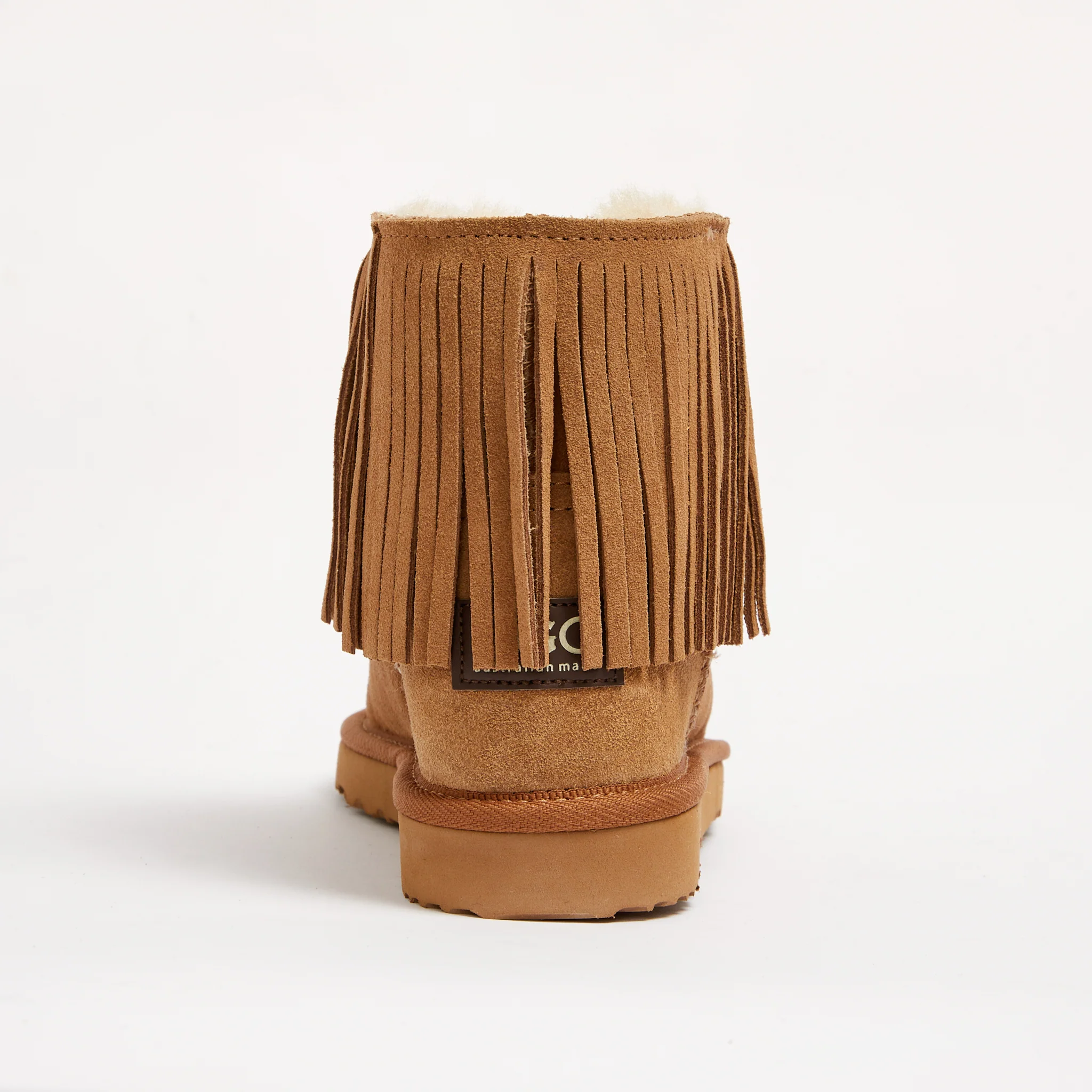 - Featuring a hand-cut suede fringe